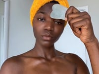 - Use the flat side of the jade face Gua Sha to stroke across the cheeks.